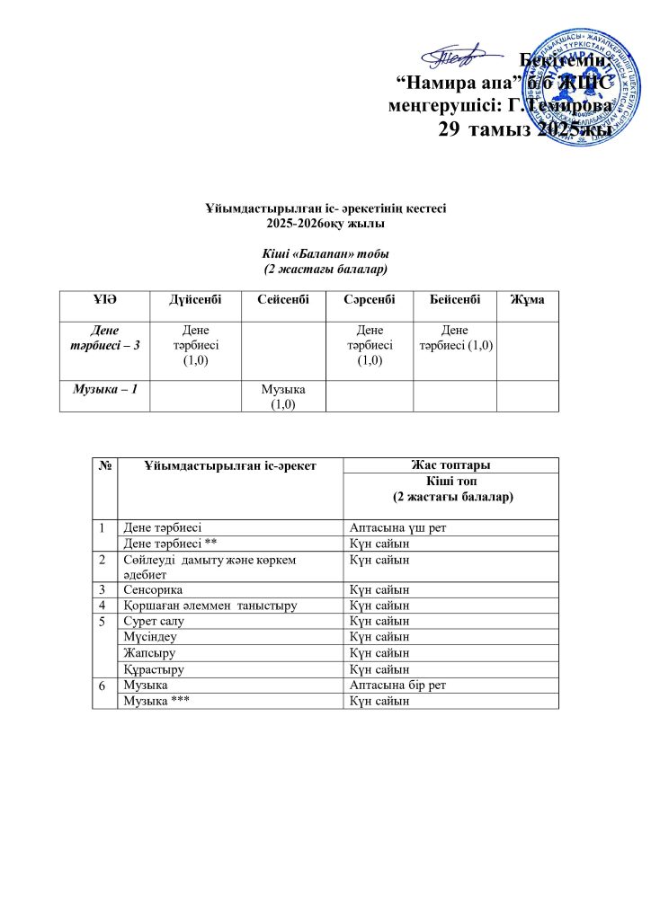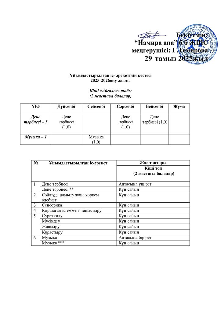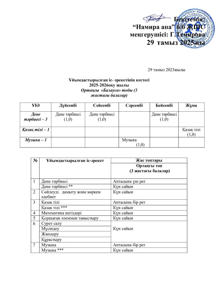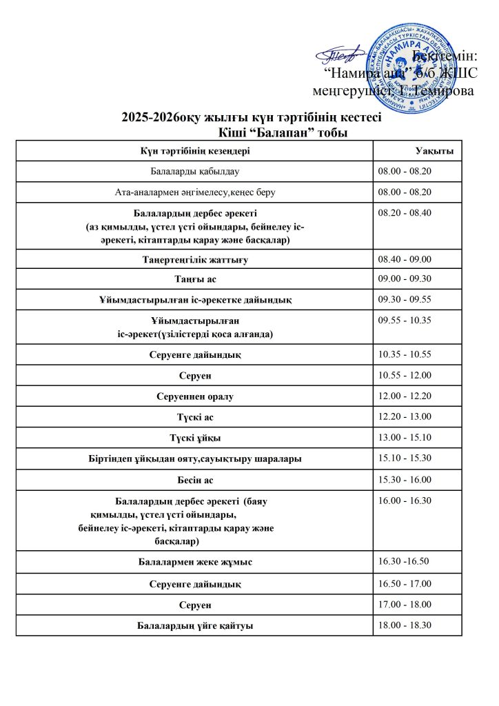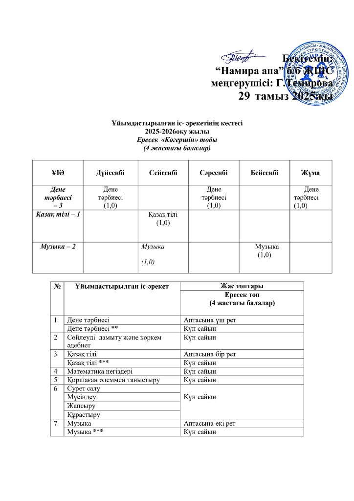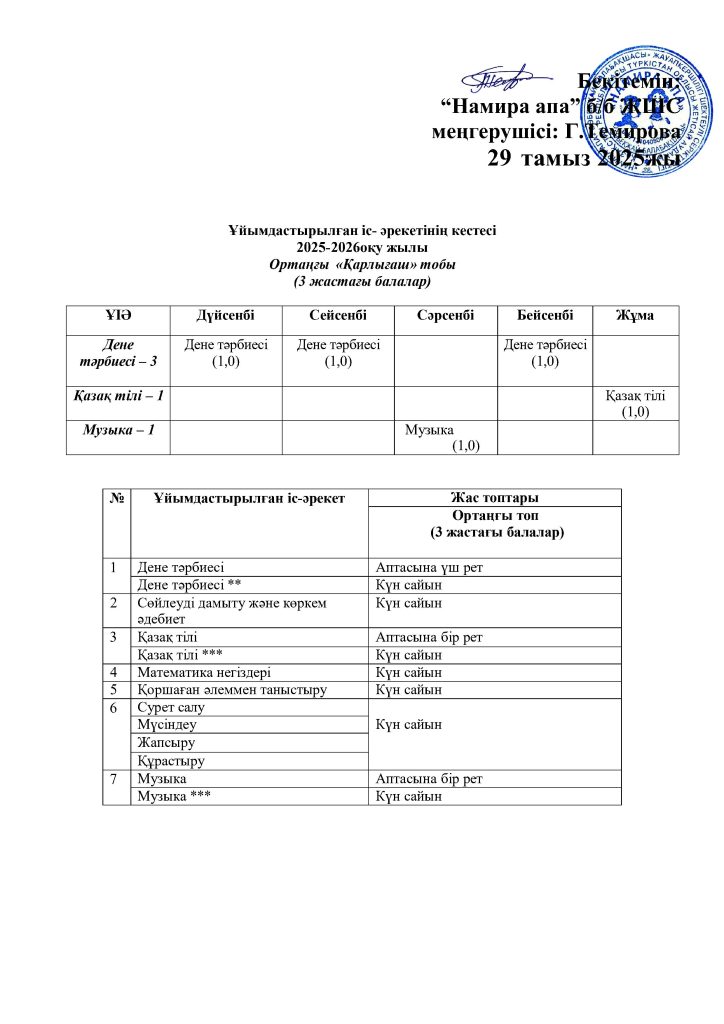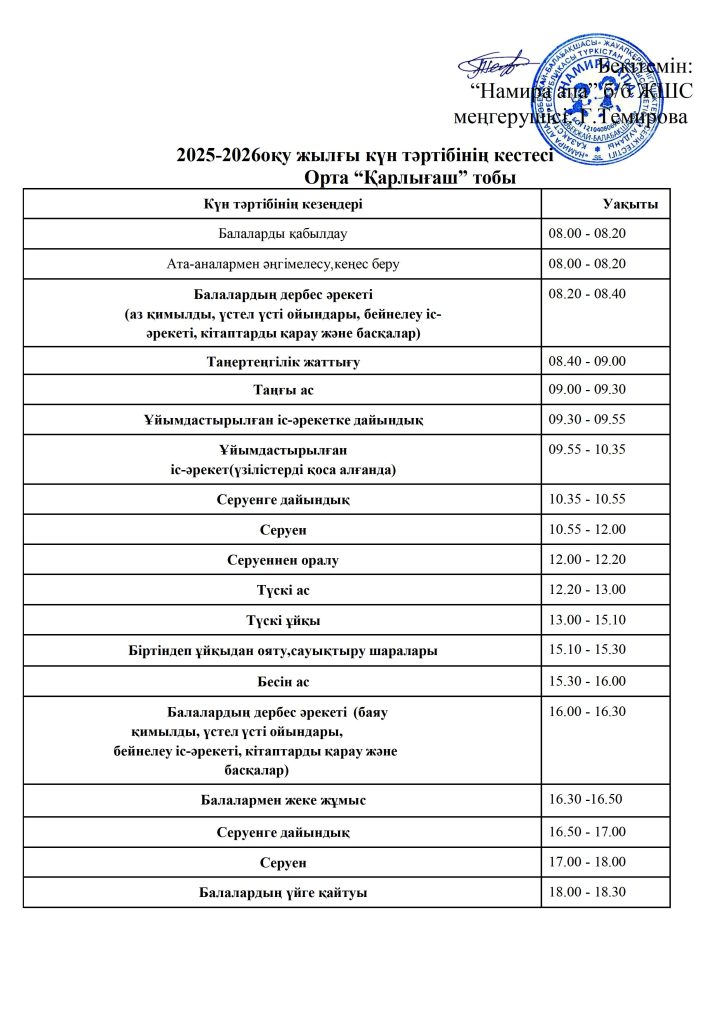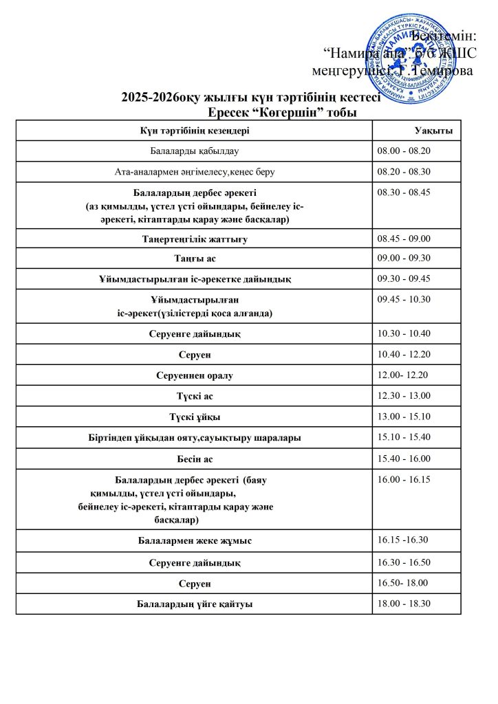 КҮН ТӘРТІБІ, ОҚУ ІС-ӘРЕКЕТ КЕСТЕСІ